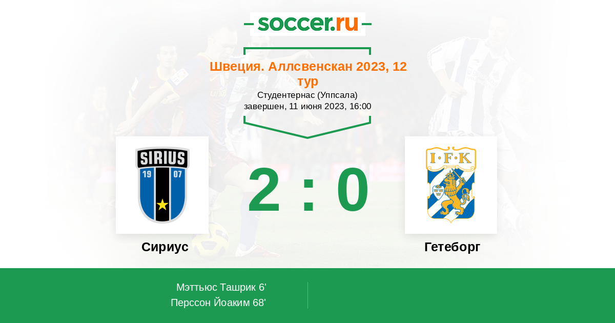 68' (2:0) Перссон Йоаким (20) (Мэттьюс Ташрик (7))