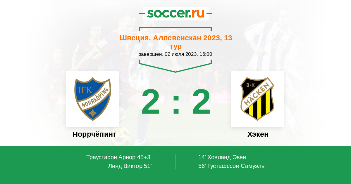56' (2:2) Густафссон Самуэль (11) (Лунд Кристоффер (25))