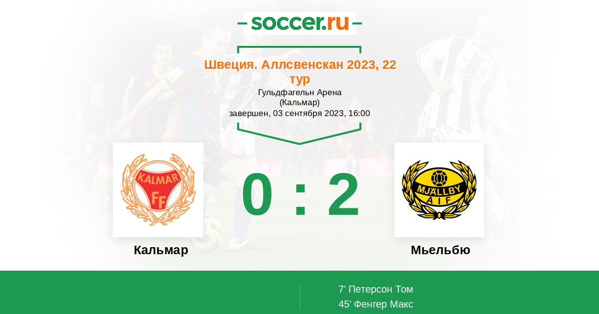 Протокол матча Кальмар против Мьельбю