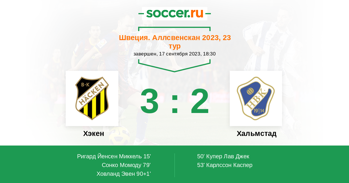 Протокол матча Хэкен против Хальмстад