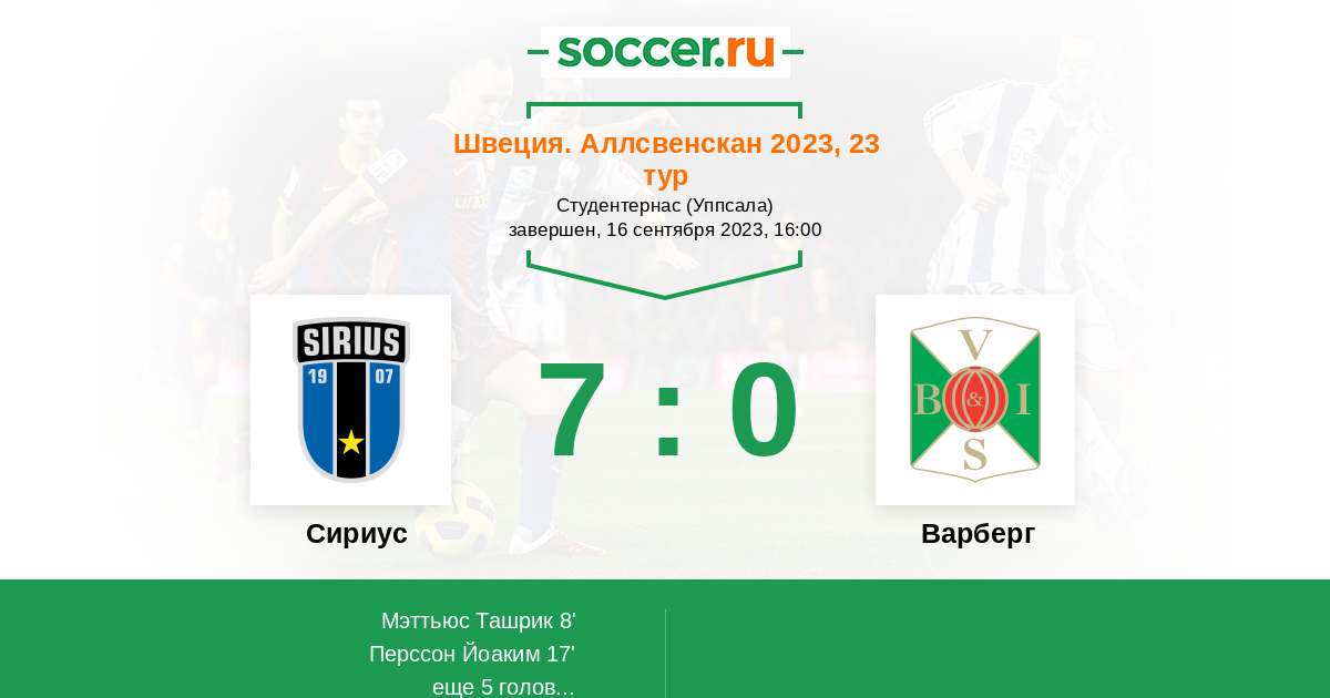 Протокол матча Сириус против Варберг