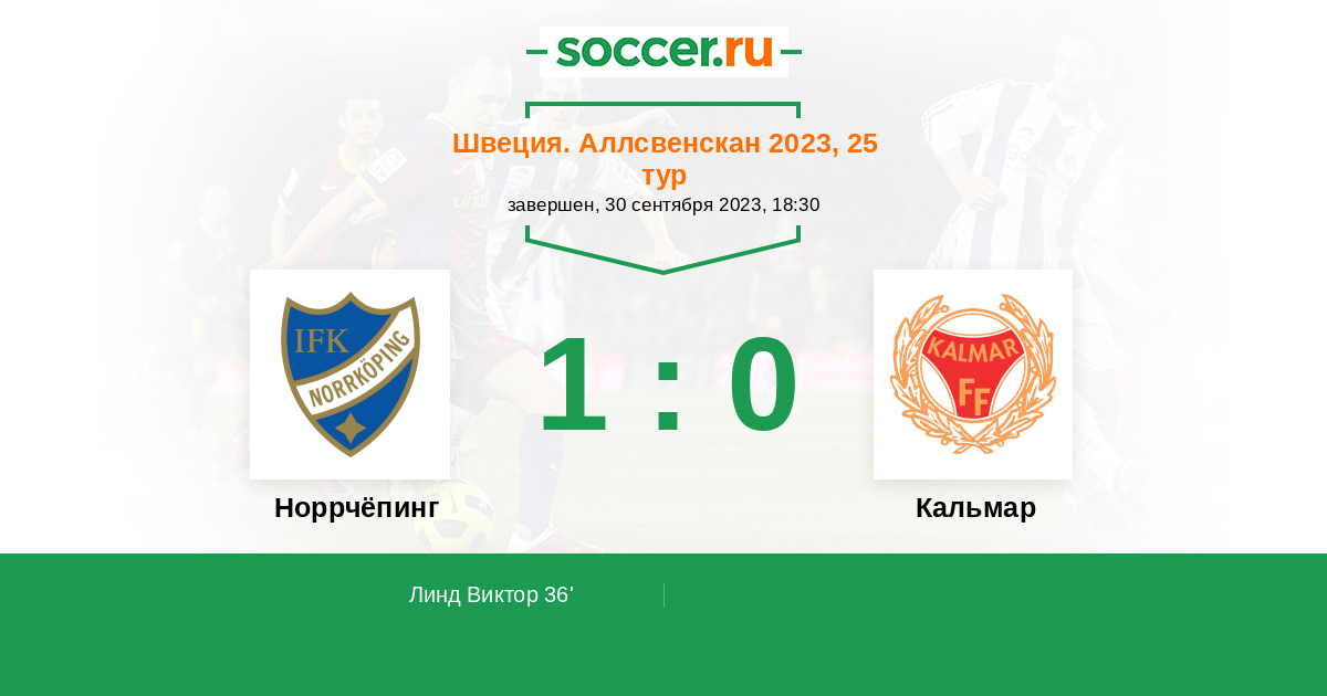 Протокол матча Норрчёпинг против Кальмар