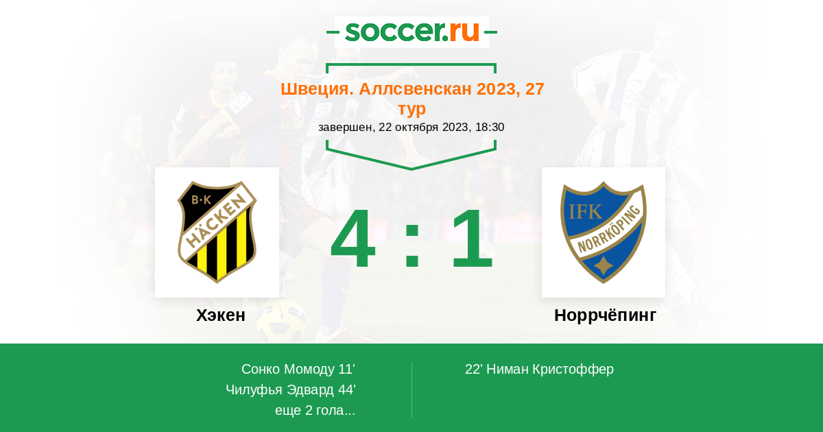 77' (4:1) Сонко Момоду (23) (Густафсон Симон (14))