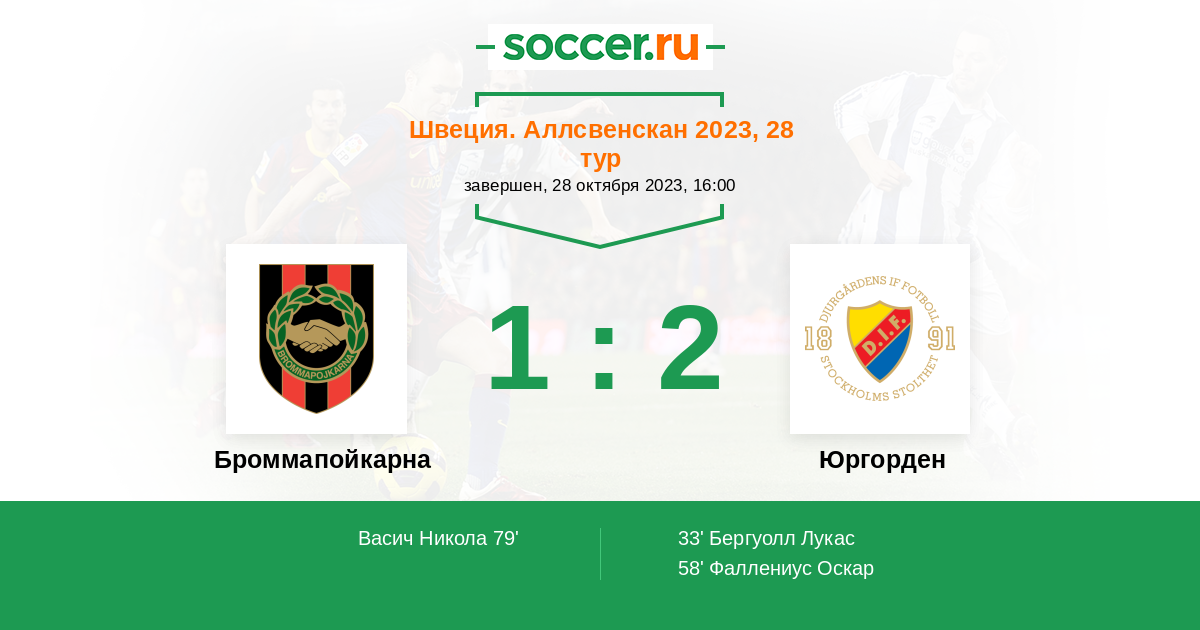 33' (0:1) Бергуолл Лукас (21) (Фаллениус Оскар (15))