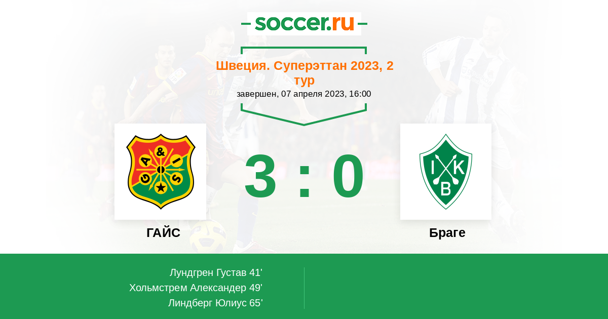 Протокол матча ГАЙС против Браге
