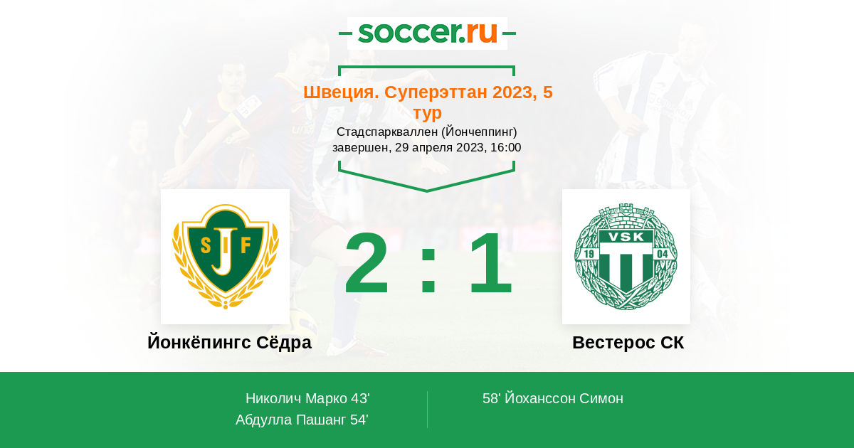 Протокол матча Йонкёпингс Сёдра против Вестерос СК