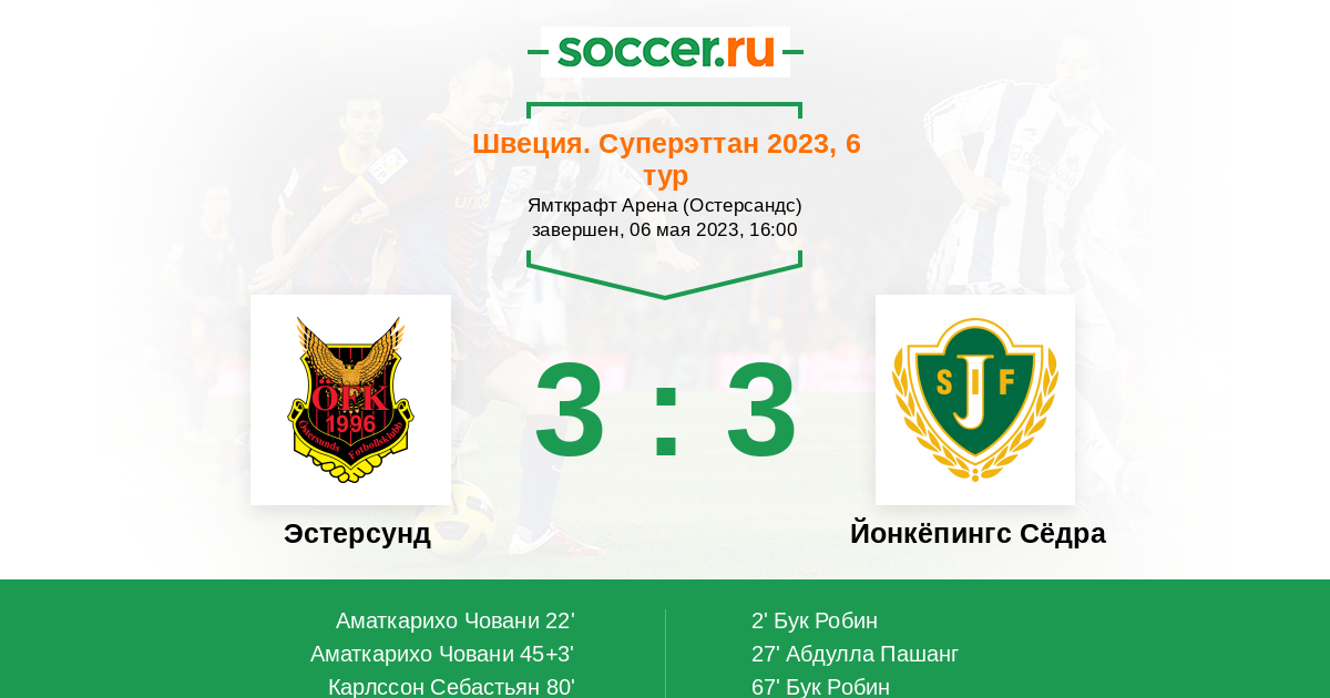 Протокол матча Эстерсунд против Йонкёпингс Сёдра