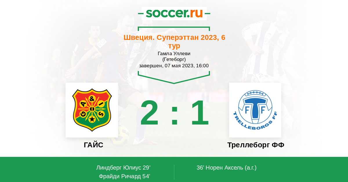 Протокол матча ГАЙС против Треллеборг ФФ