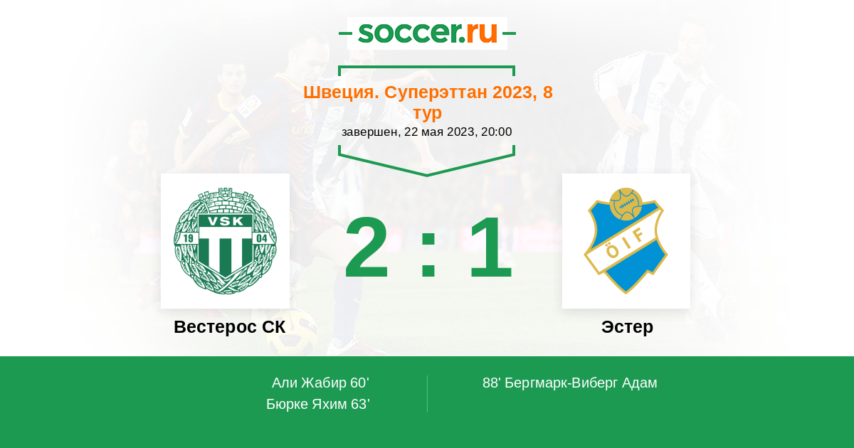 88' (2:1) Бергмарк-Виберг Адам (19)
