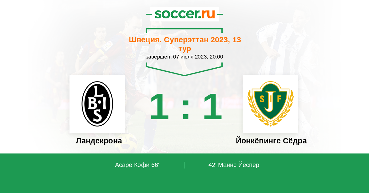 Протокол матча Ландскрона против Йонкёпингс Сёдра