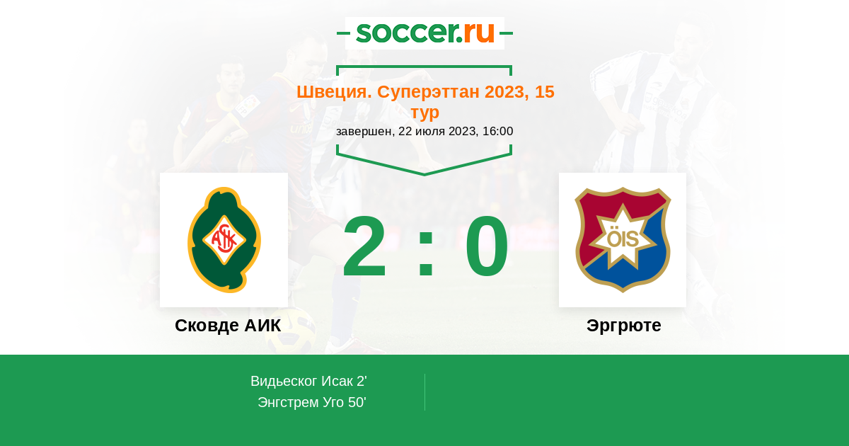 Протокол матча Сковде АИК против Эргрюте