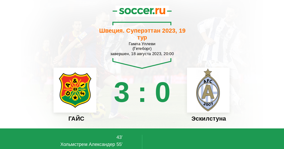 55' (2:0) Хольмстрем Александер (18) (Линдберг Йонас (25))