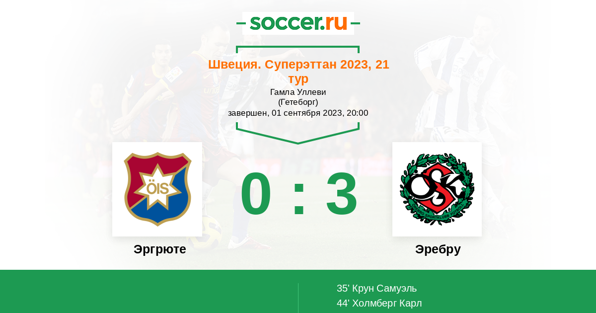 Протокол матча Эргрюте против Эребру