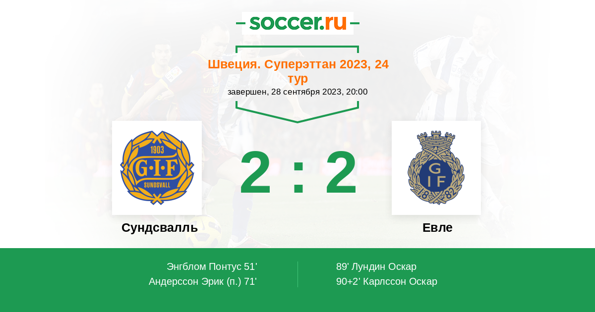 Гол90+2' (2:2) Карлссон Оскар (23)