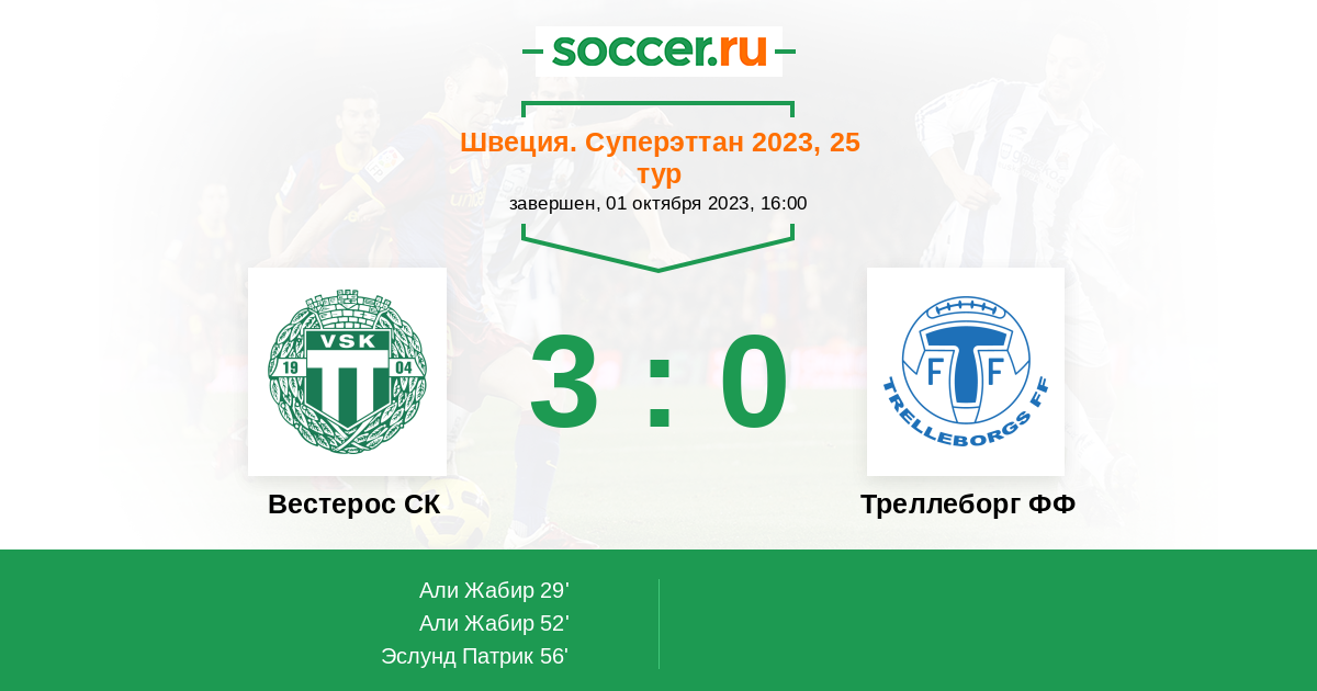 Протокол матча Вестерос СК против Треллеборг ФФ