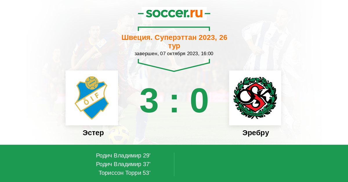 Протокол матча Эстер против Эребру