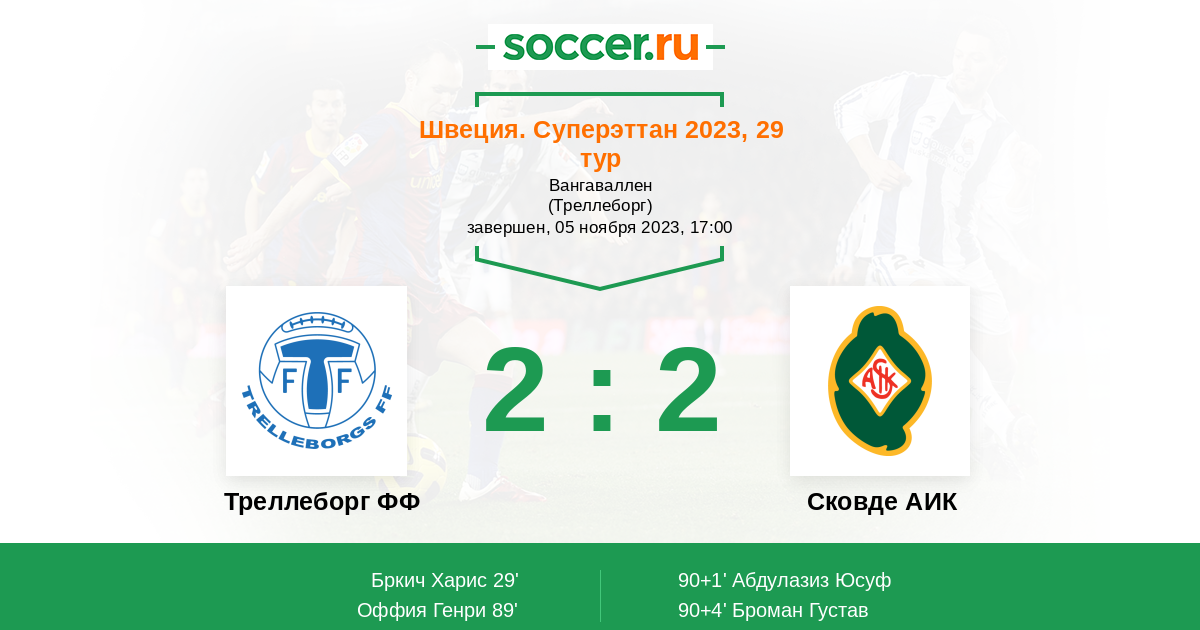 Гол90+4' (2:2) Броман Густав (5)