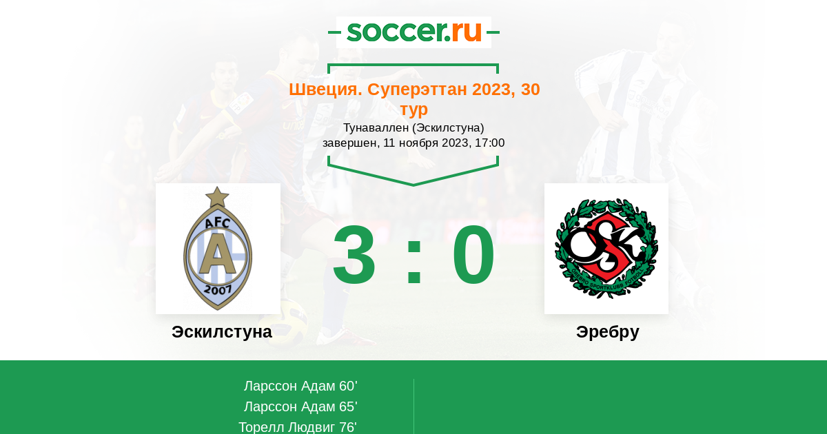 Протокол матча Эскилстуна против Эребру