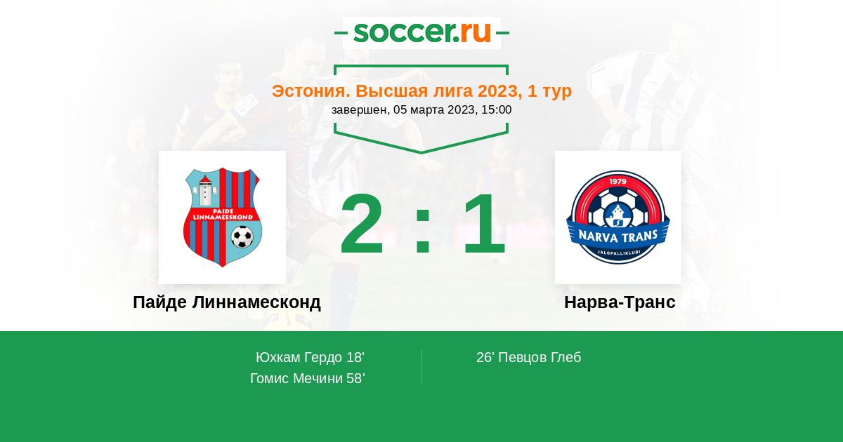 Протокол матча Пайде Линнамесконд против Нарва-Транс