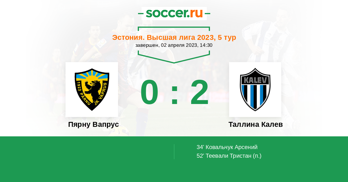 Протокол матча Пярну Вапрус против Таллина Калев