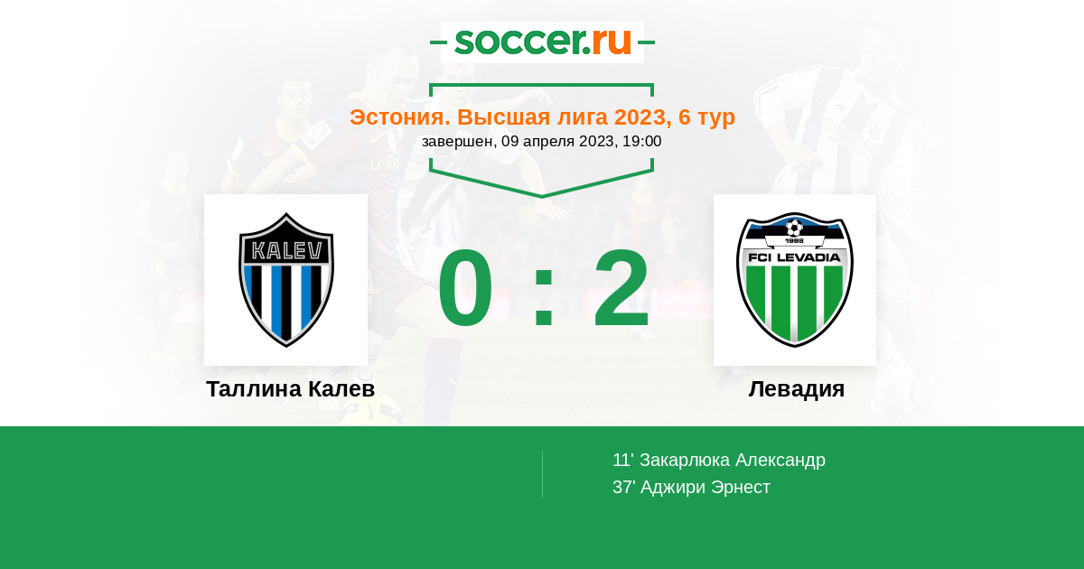 Протокол матча Таллина Калев против Левадия