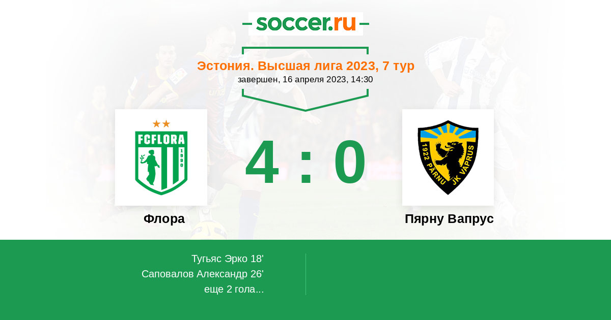 Протокол матча Флора против Пярну Вапрус
