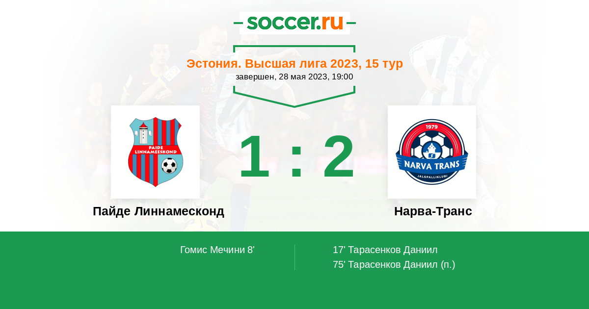 Протокол матча Пайде Линнамесконд против Нарва-Транс