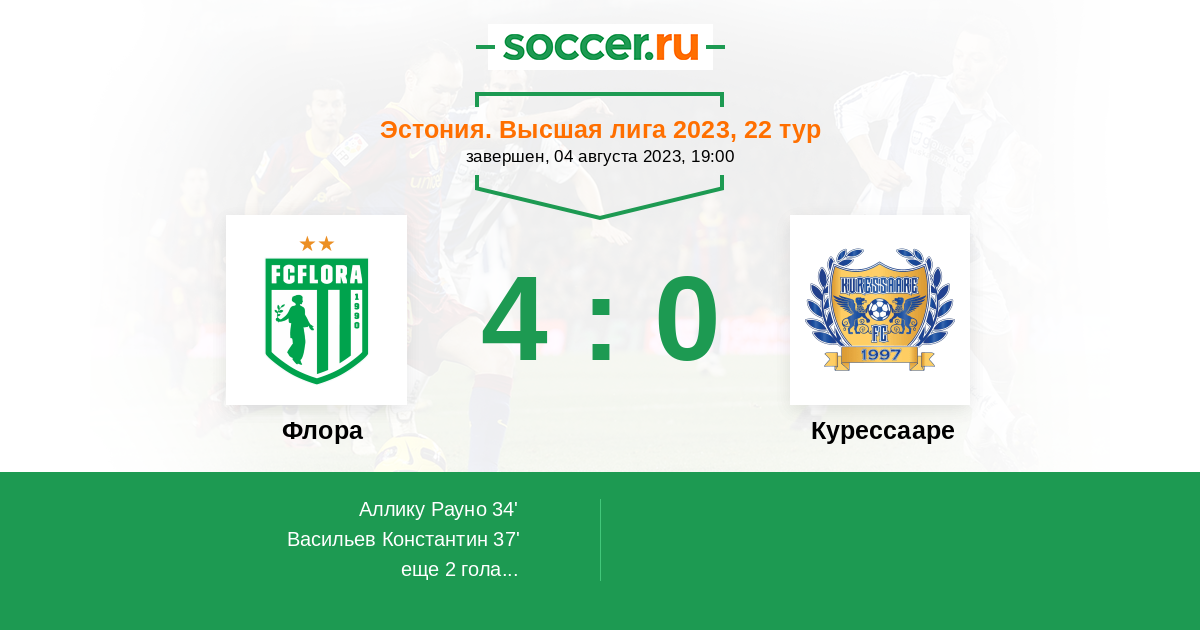 Протокол матча Флора против Курессааре