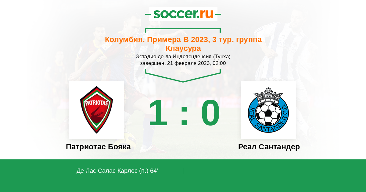 Протокол матча Патриотас Бояка против Реал Сантандер