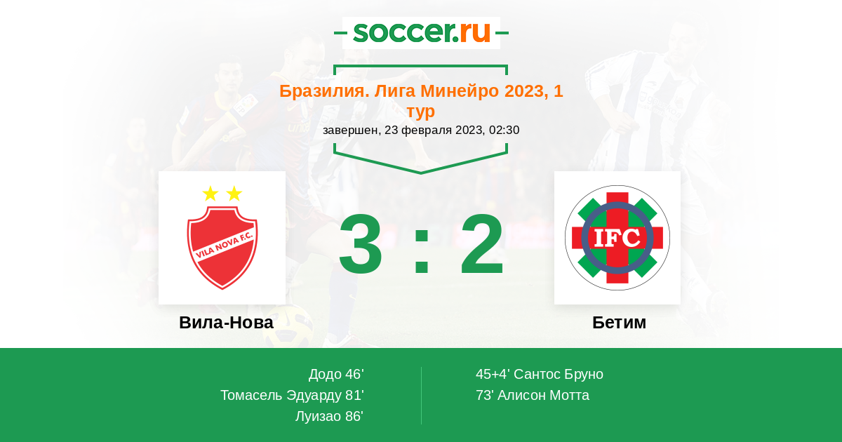 Гол45+4' (0:1) Сантос Бруно (6) (Жуниор Марсио (17))