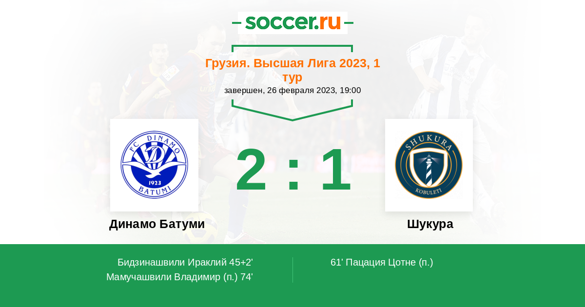 Протокол матча Динамо Батуми против Шукура