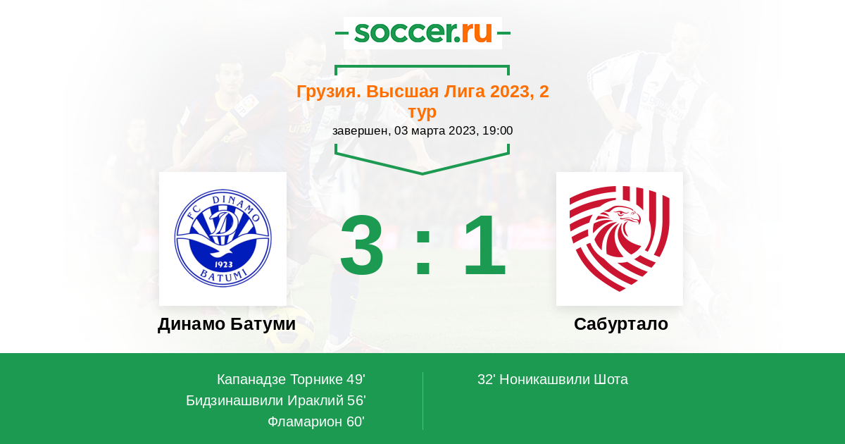 Протокол матча Динамо Батуми против Сабуртало