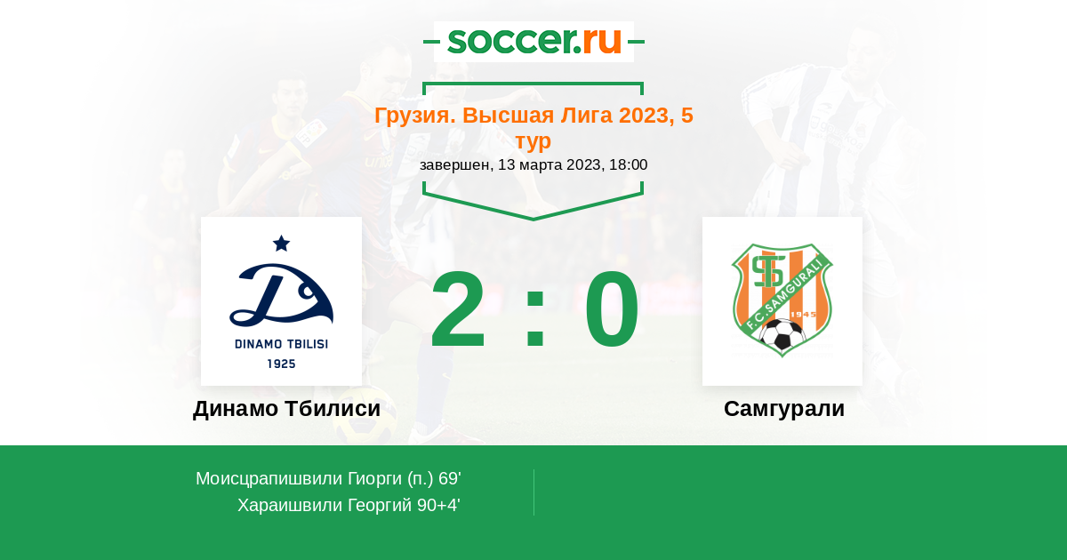 Протокол матча Динамо Тбилиси против Самгурали