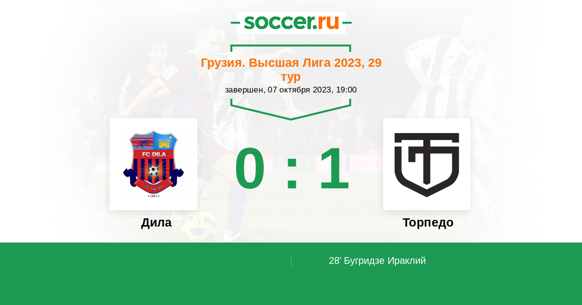 Протокол матча Дила против Торпедо