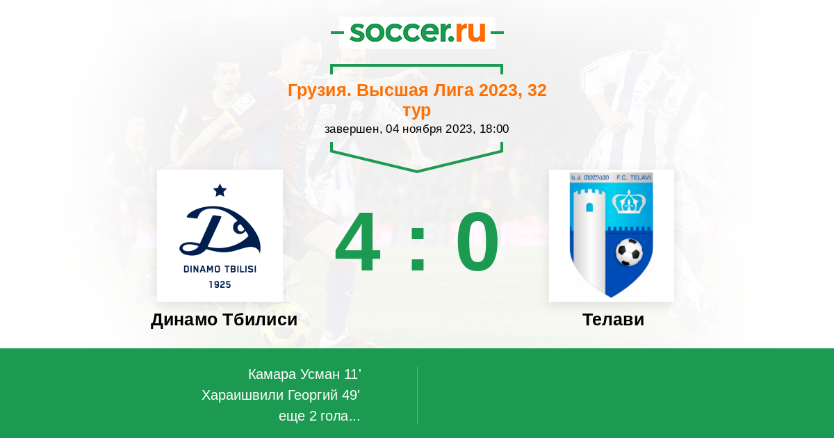 Протокол матча Динамо Тбилиси против Телави