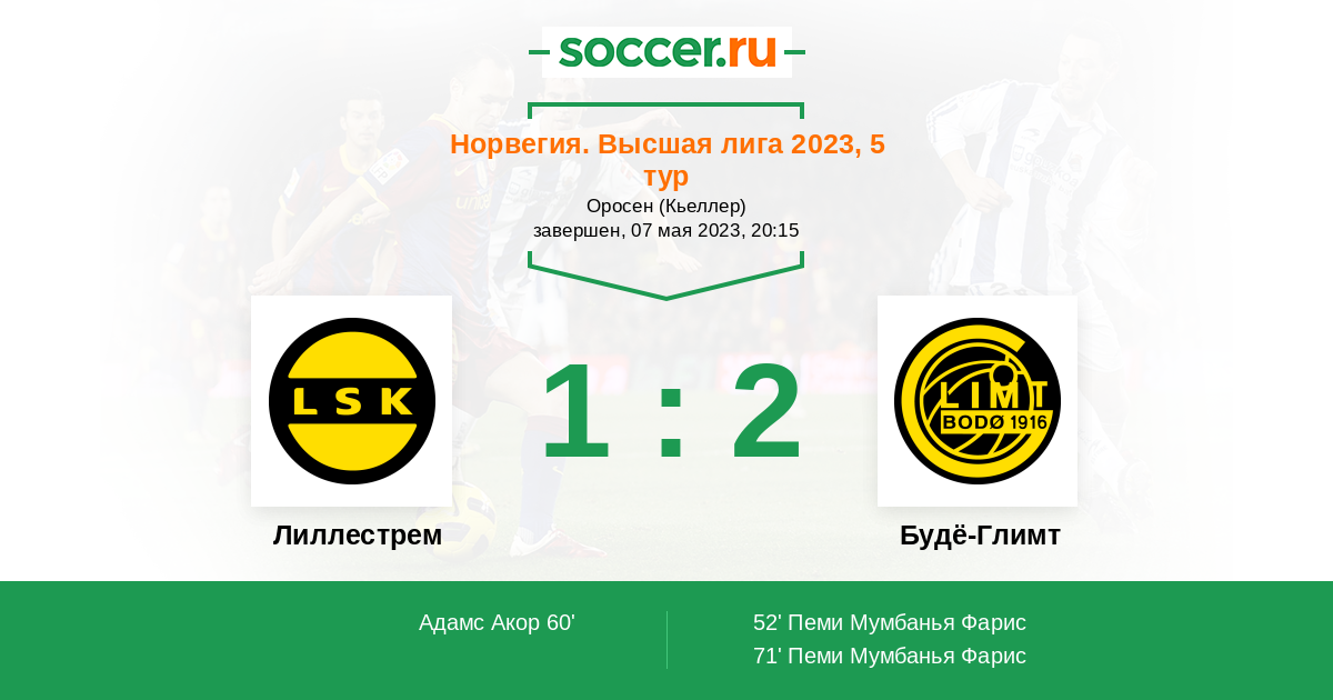Протокол матча Лиллестрем против Будё-Глимт