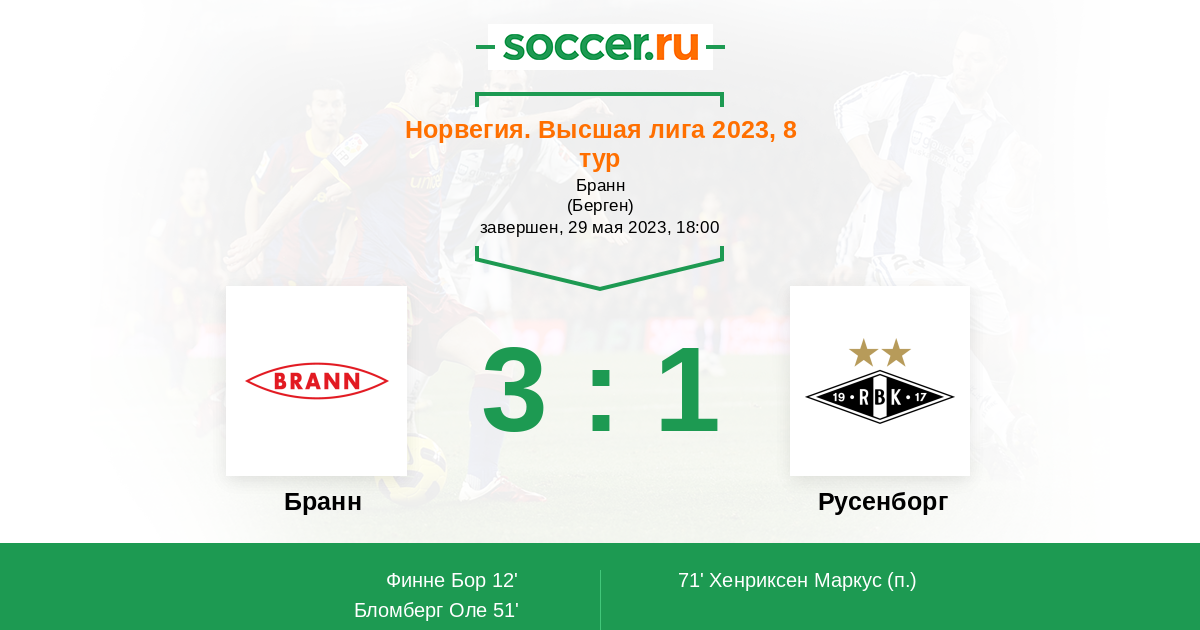 Протокол матча Бранн против Русенборг