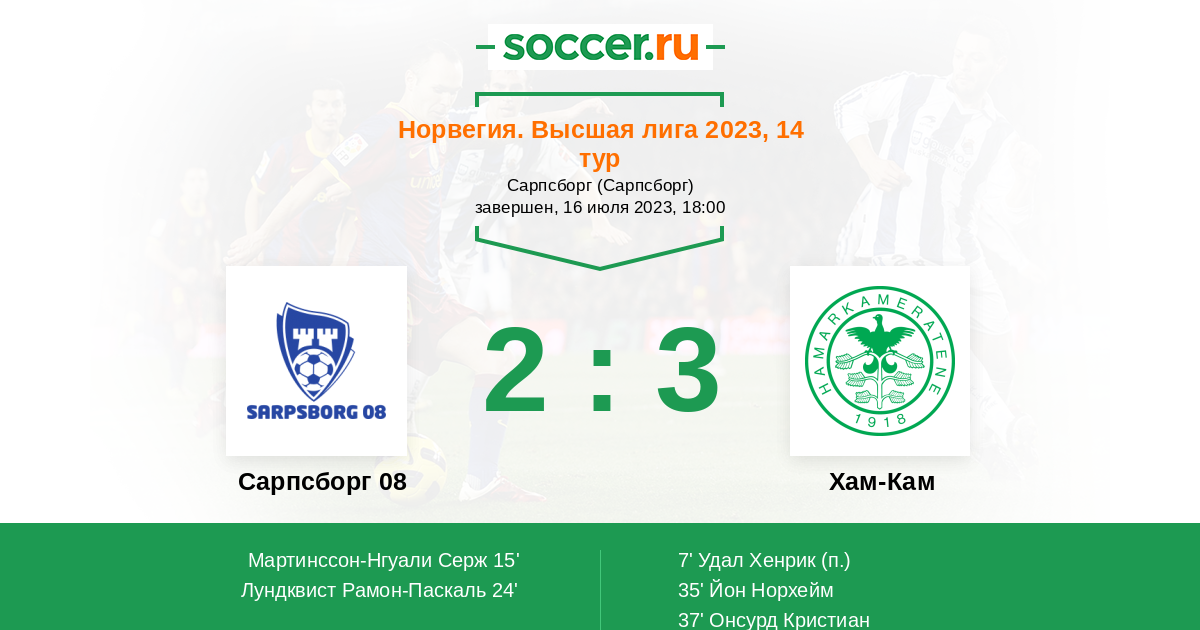Протокол матча Сарпсборг 08 против Хам-Кам