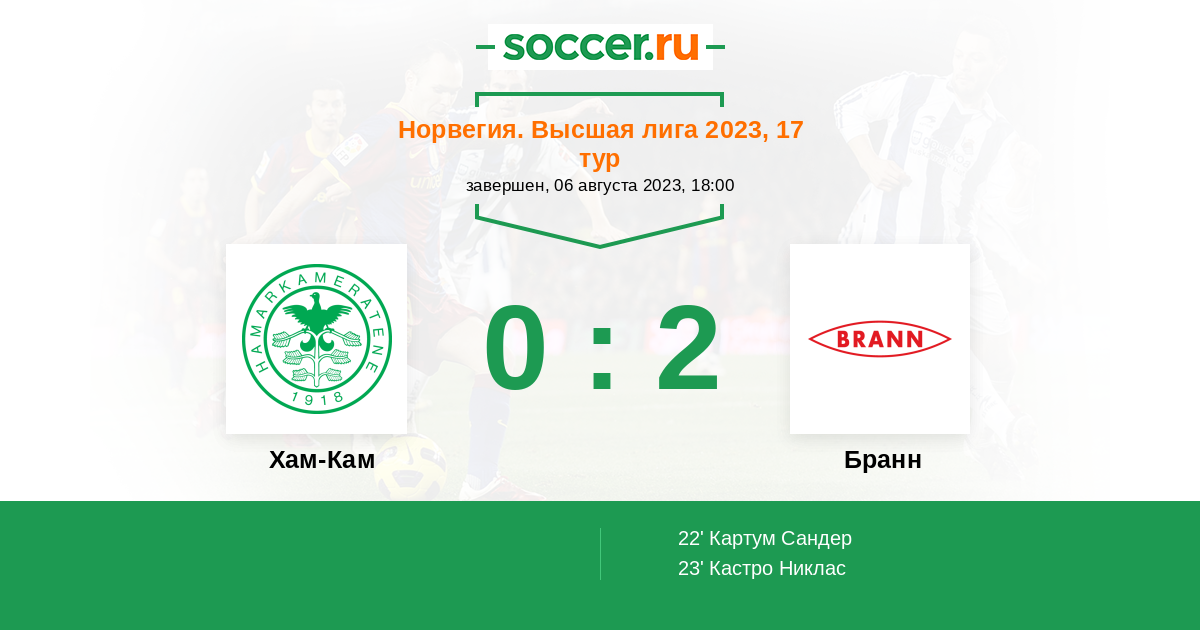 Протокол матча Хам-Кам против Бранн