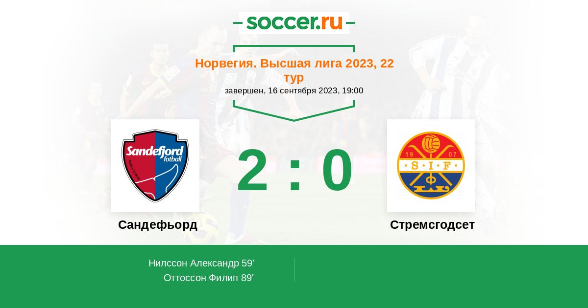 Протокол матча Сандефьорд против Стремсгодсет
