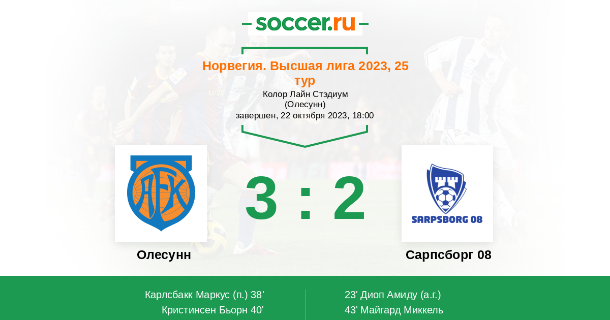 40' (2:1) Кристинсен Бьорн (29) (Сегберг Эрленд (6))