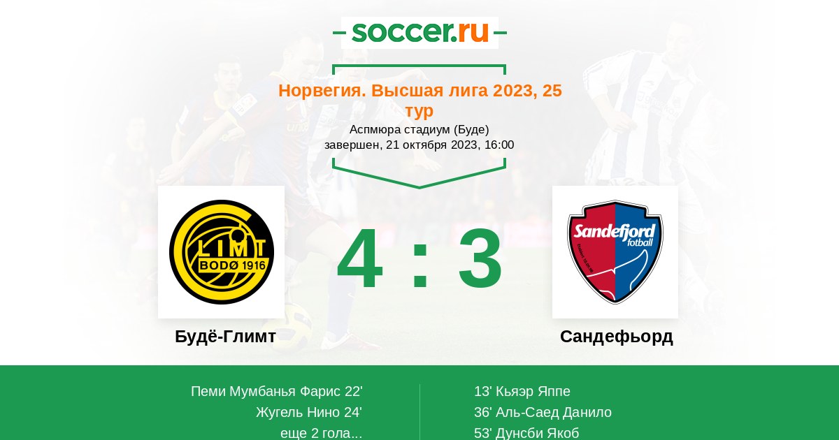 Гол45+2' (4:2) Салтнес Ульрик (14) (Пеллегрино Амал (7))