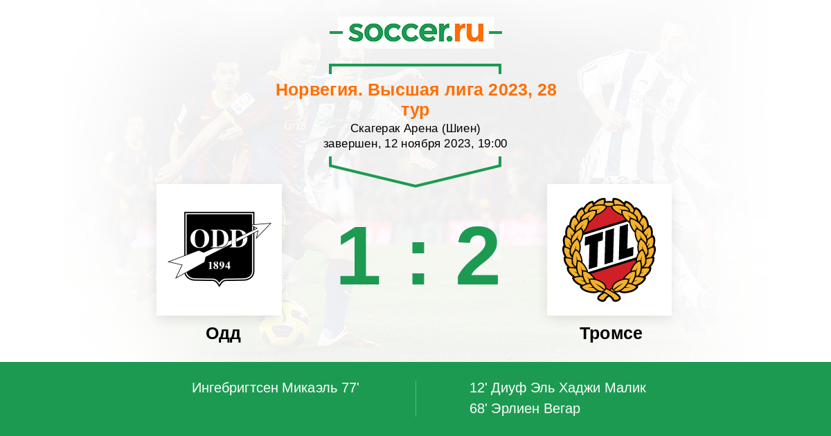 77' (1:2) Ингебригтсен Микаэль (10) (Свендсен Тобиас (14))