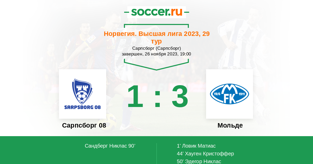 Протокол матча Сарпсборг 08 против Мольде