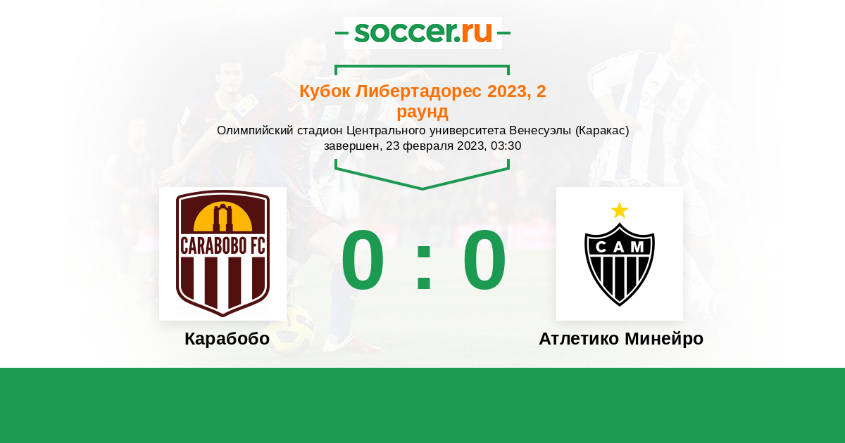Я думаю что в этом противостоянии более чем явным фаворитом на победу является команда гостей из Бразилии Атлетико Минейро . Но и команда хозяев поля Венесуэльский клуб Карабобо точно не будет мальчиками для битья. Ничья или минимальная победа гостей.