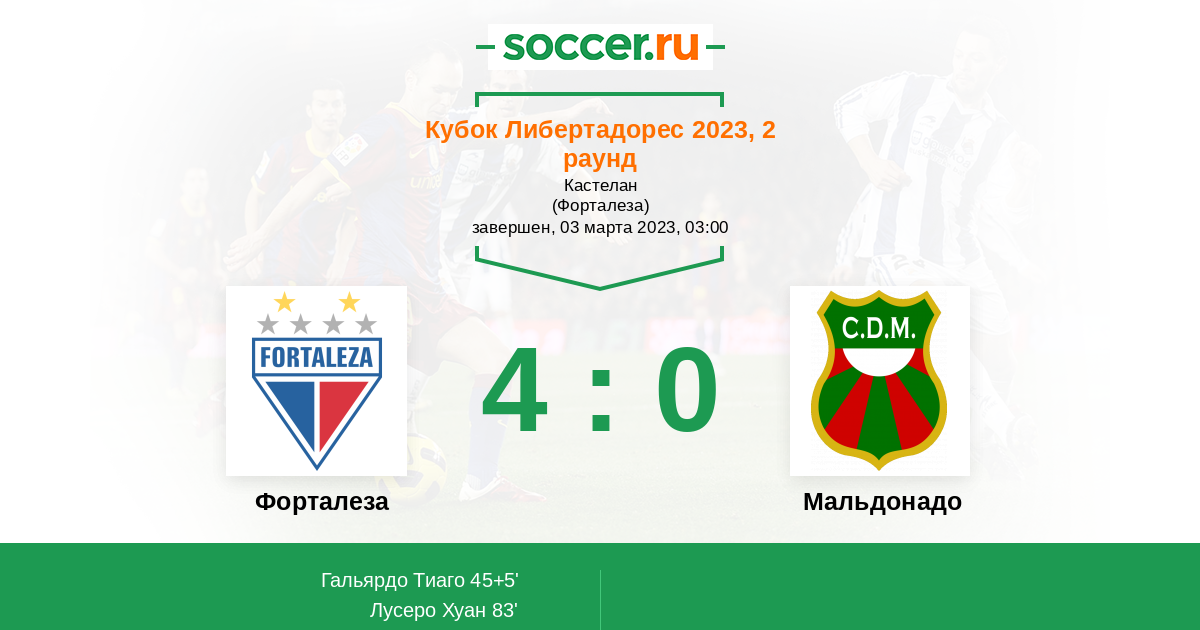Я думаю что в этом противостоянии более чем явным фаворитом на победу является команда бразильская Форталеза . Но и команда гостей уругвайская Мальдонадо не будет мальчиками для битья и разгрома тут не будет.