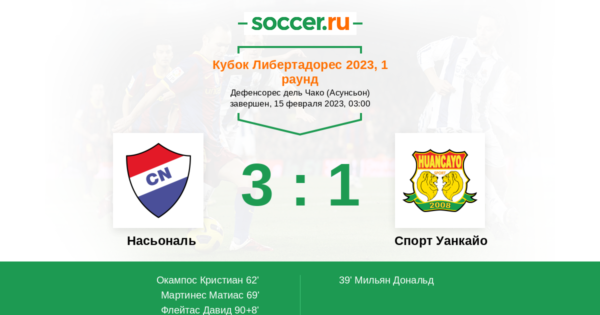 Протокол матча Насьональ против Спорт Уанкайо