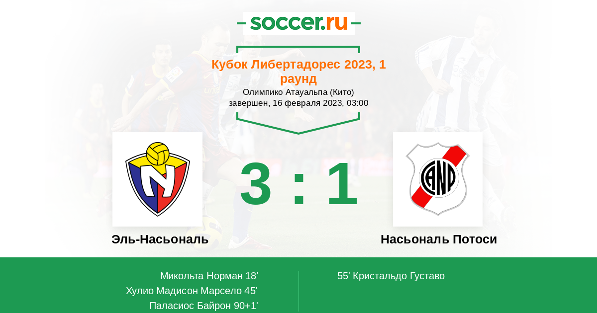Протокол матча Эль-Насьональ против Насьональ Потоси