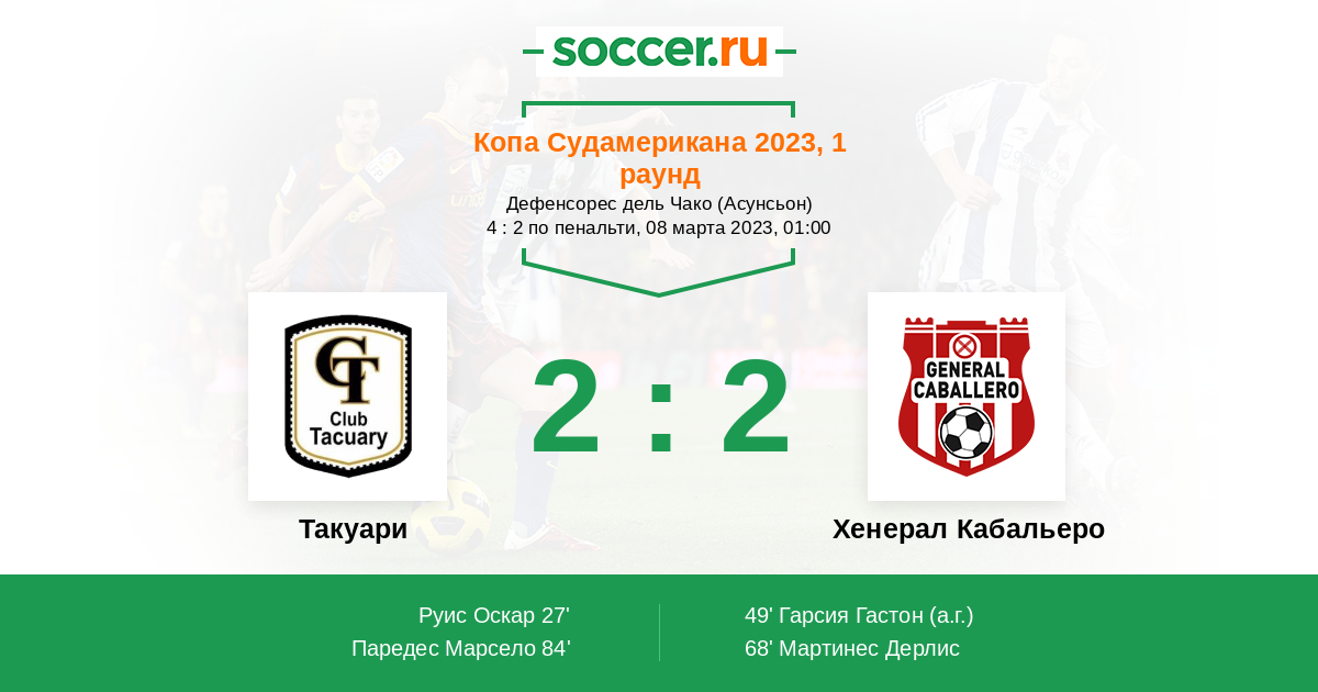 Протокол матча Такуари против Хенерал Кабальеро
