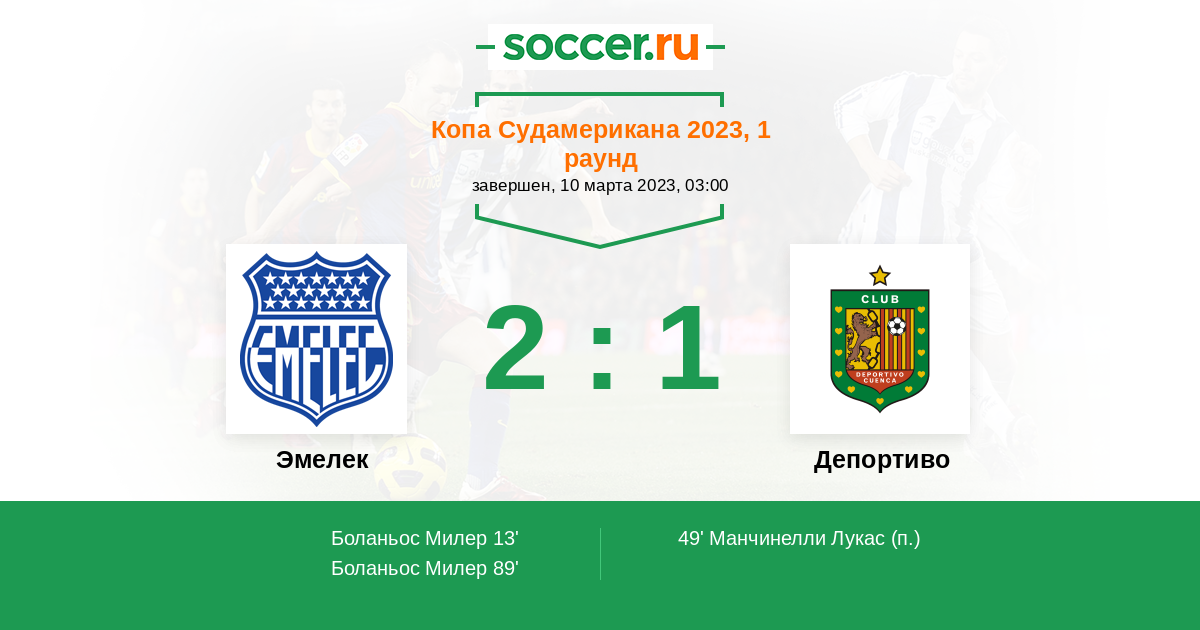 13' (1:0) Боланьос Милер (23) (Гарсия Диего (11))